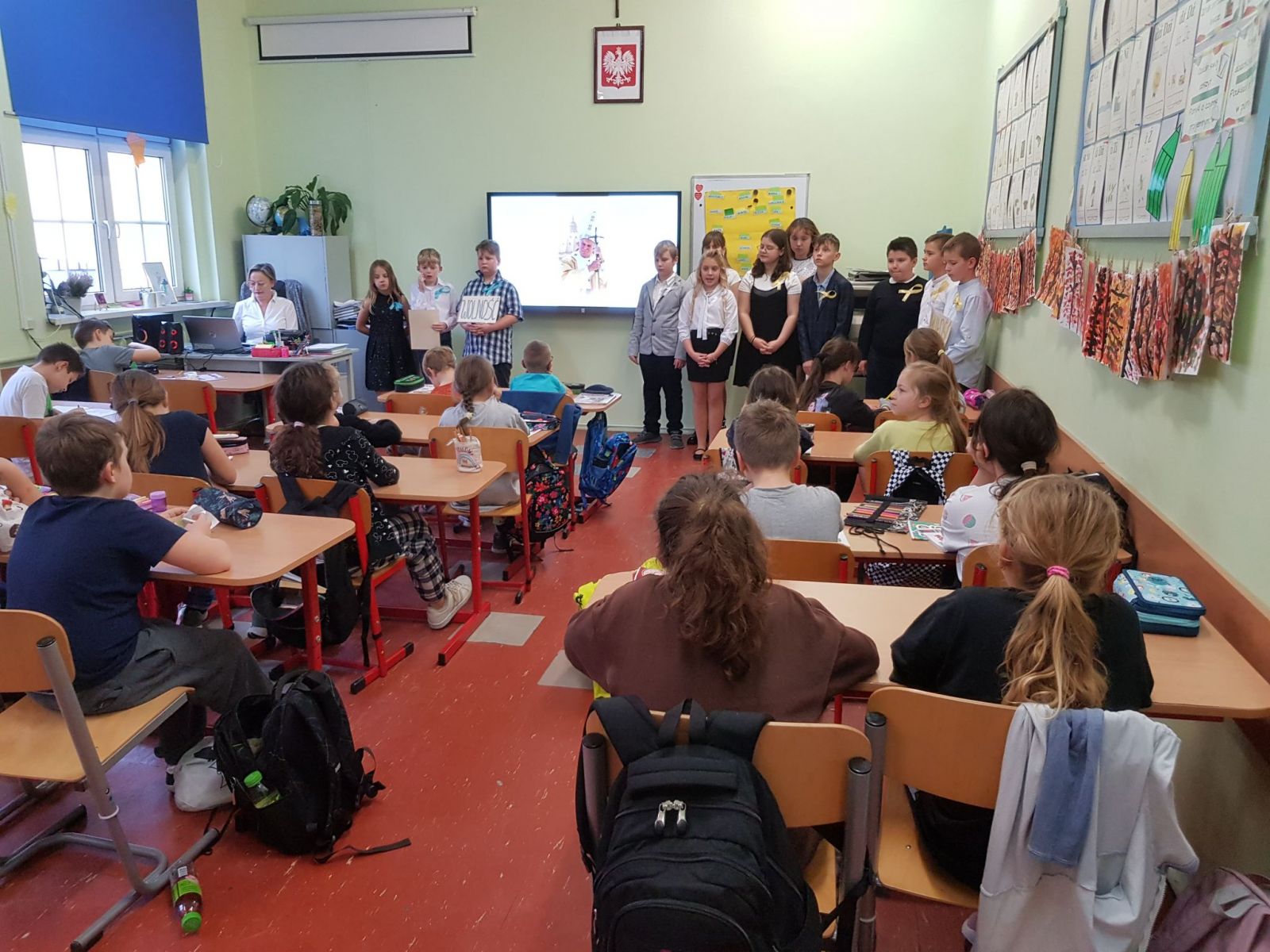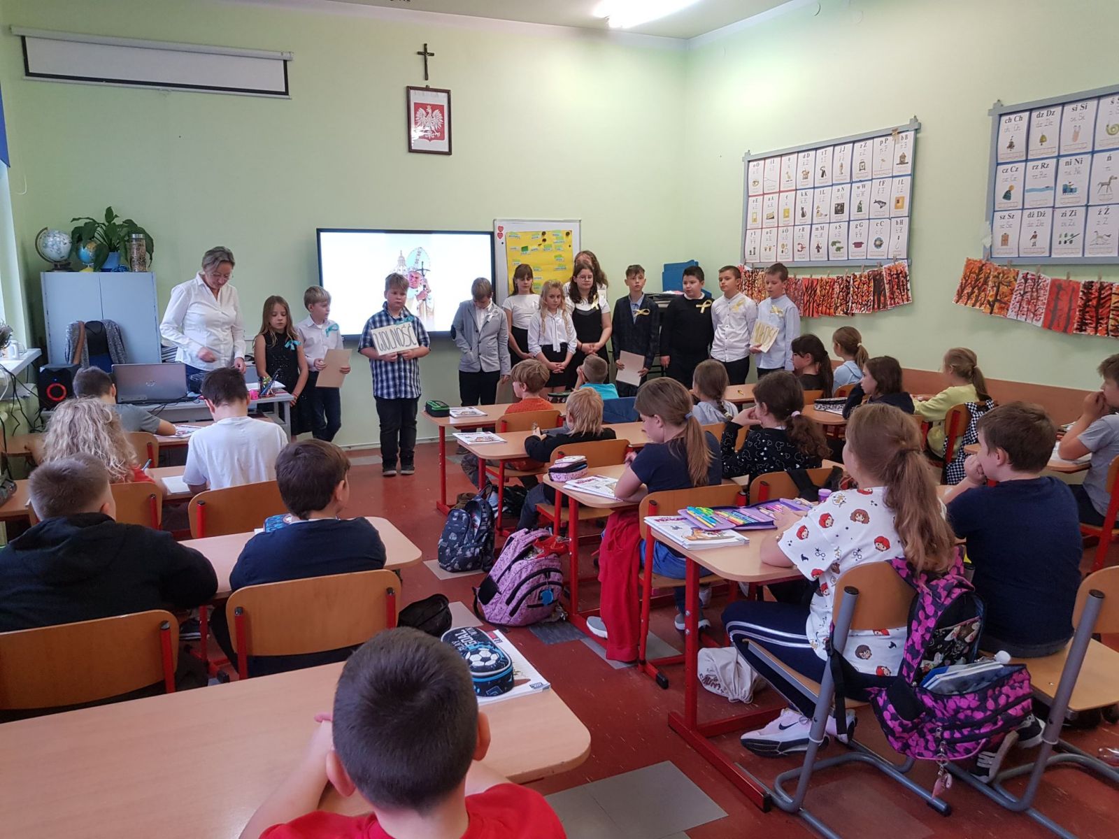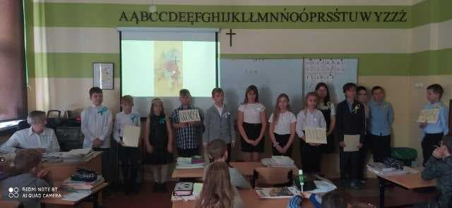 Z okazji XXII Dnia Papieskiego kl. IV a przygotowała kolegom i koleżankom katechezę, nawiązującą do encykliki Jana Pawła II „Veriatis spelndor” (Blask prawdy).