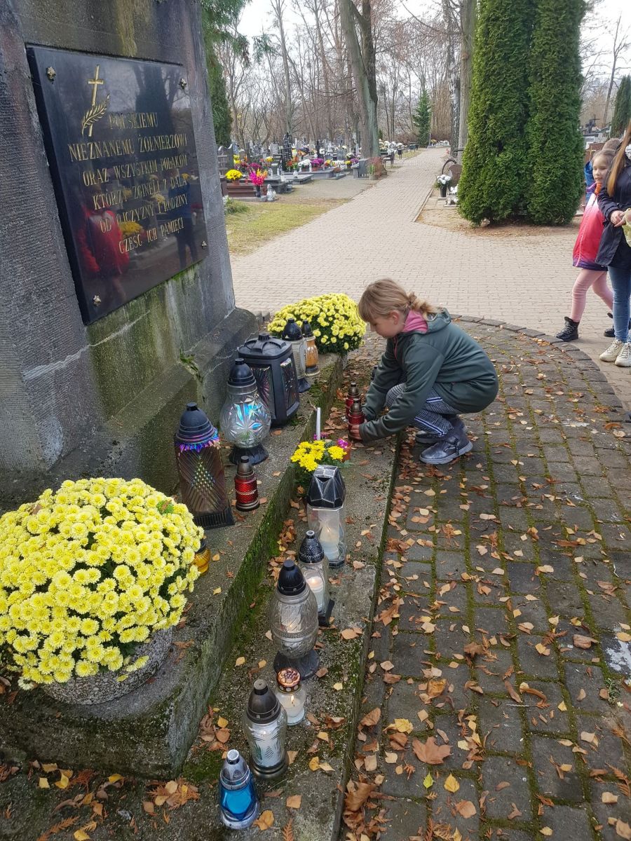 11 listopada, dzień szczęśliwy- rocznica Odzyskania Niepodległości, ale jednocześnie czas zadumy, wspomnień o tych, którzy walczyli o naszą WOLNOŚĆ. Klasa III, wybrała się na cmentarz, żeby w chwili ciszy pomyśleć o żołnierzach oraz kobietach i dzieciach, którzy przysłużyli się do tego, że możemy żyć w wolnej Polsce.