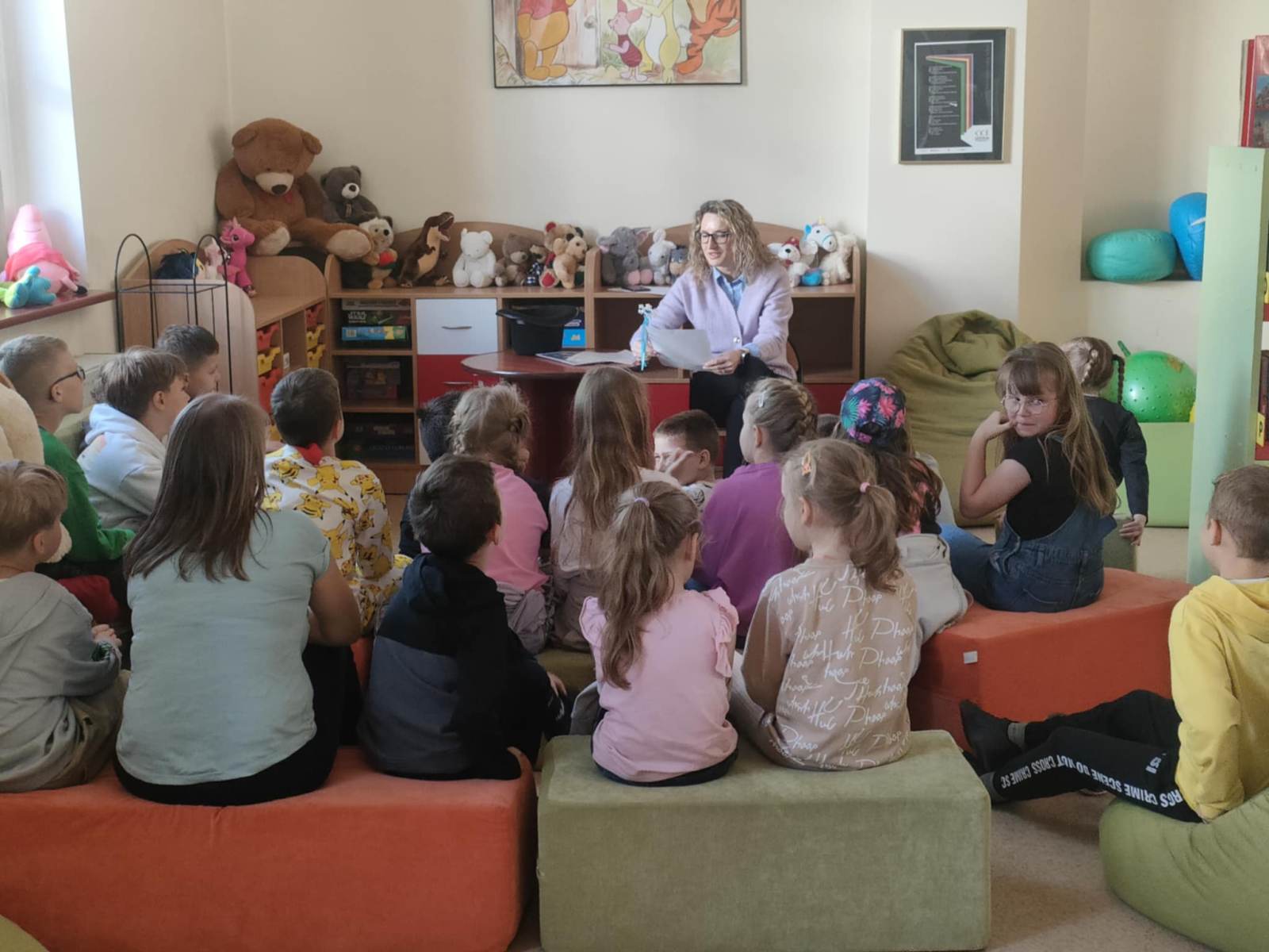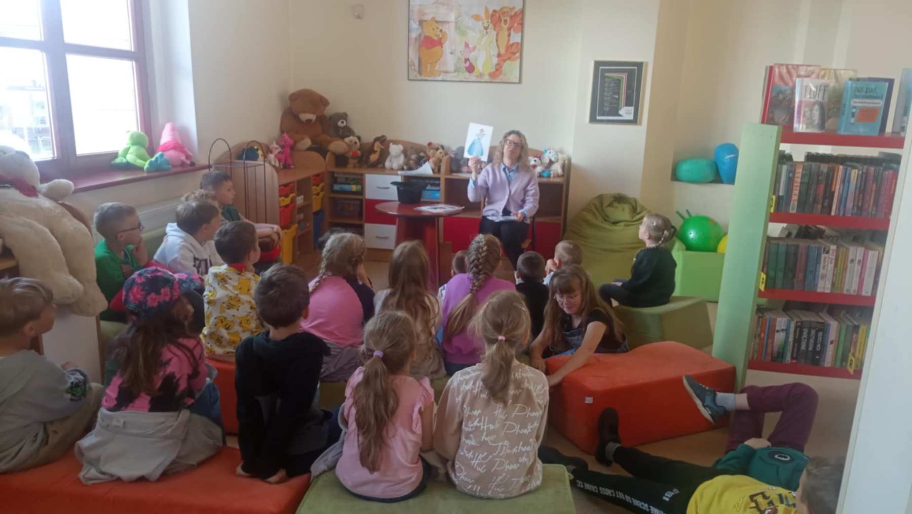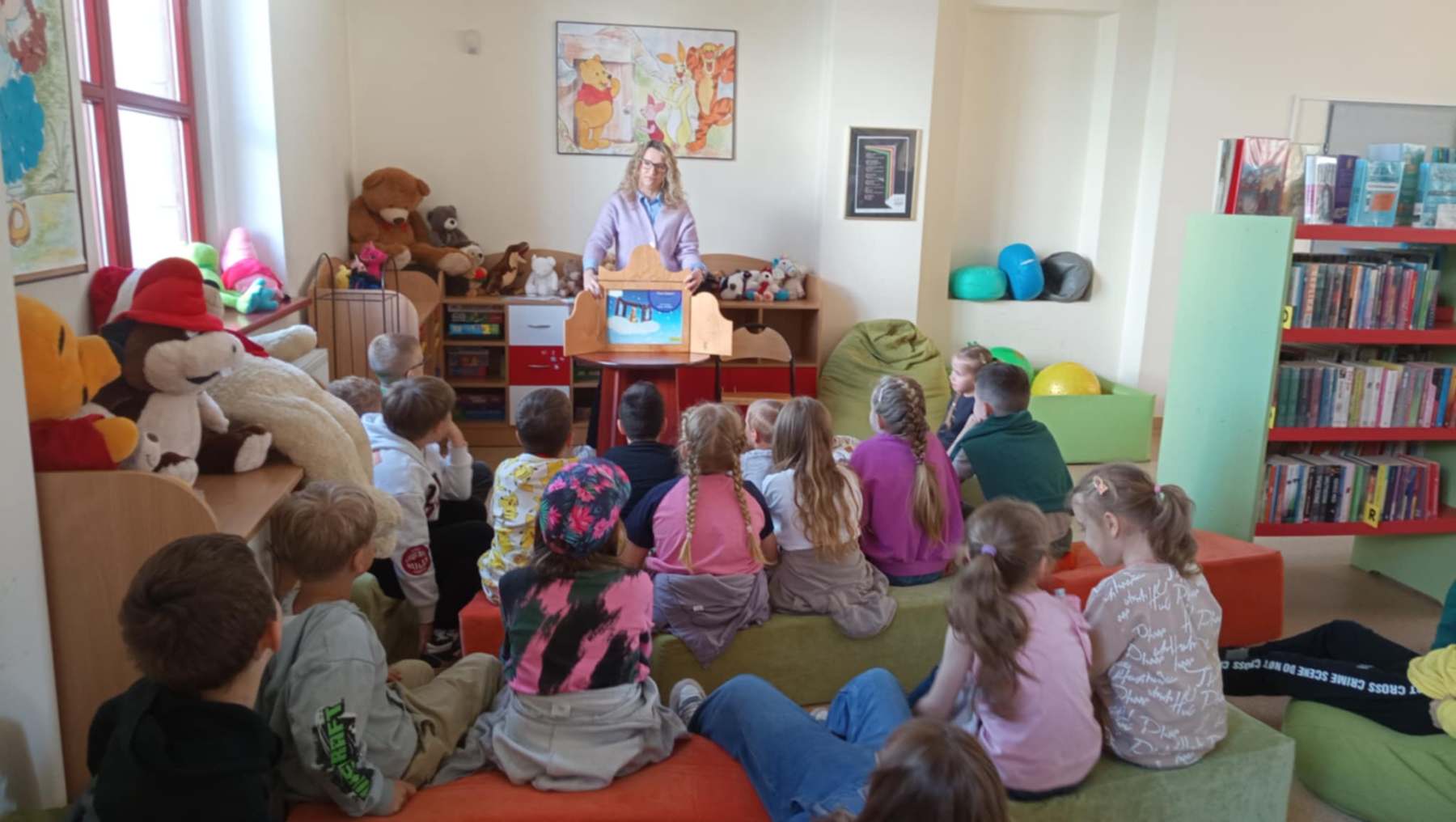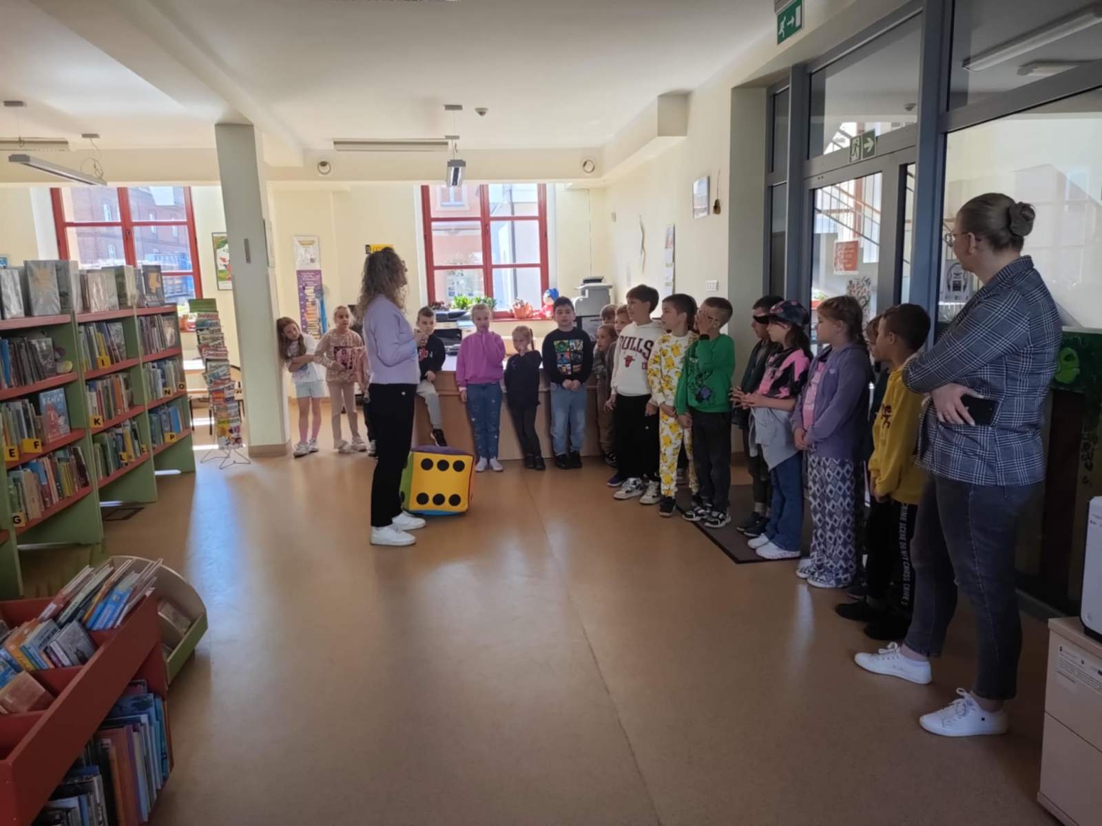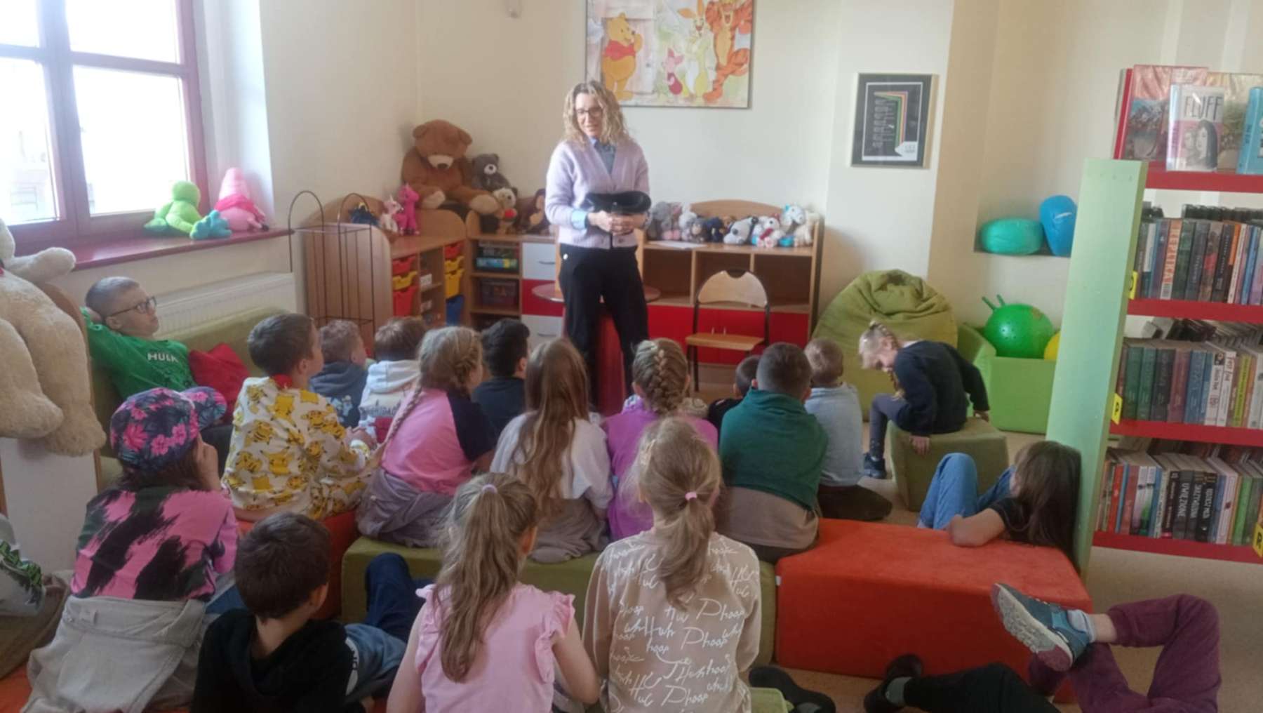 Wizyta pierwszaczków w CKB w Dobrym Mieście. Lekcja polskiego poza szkolną salą