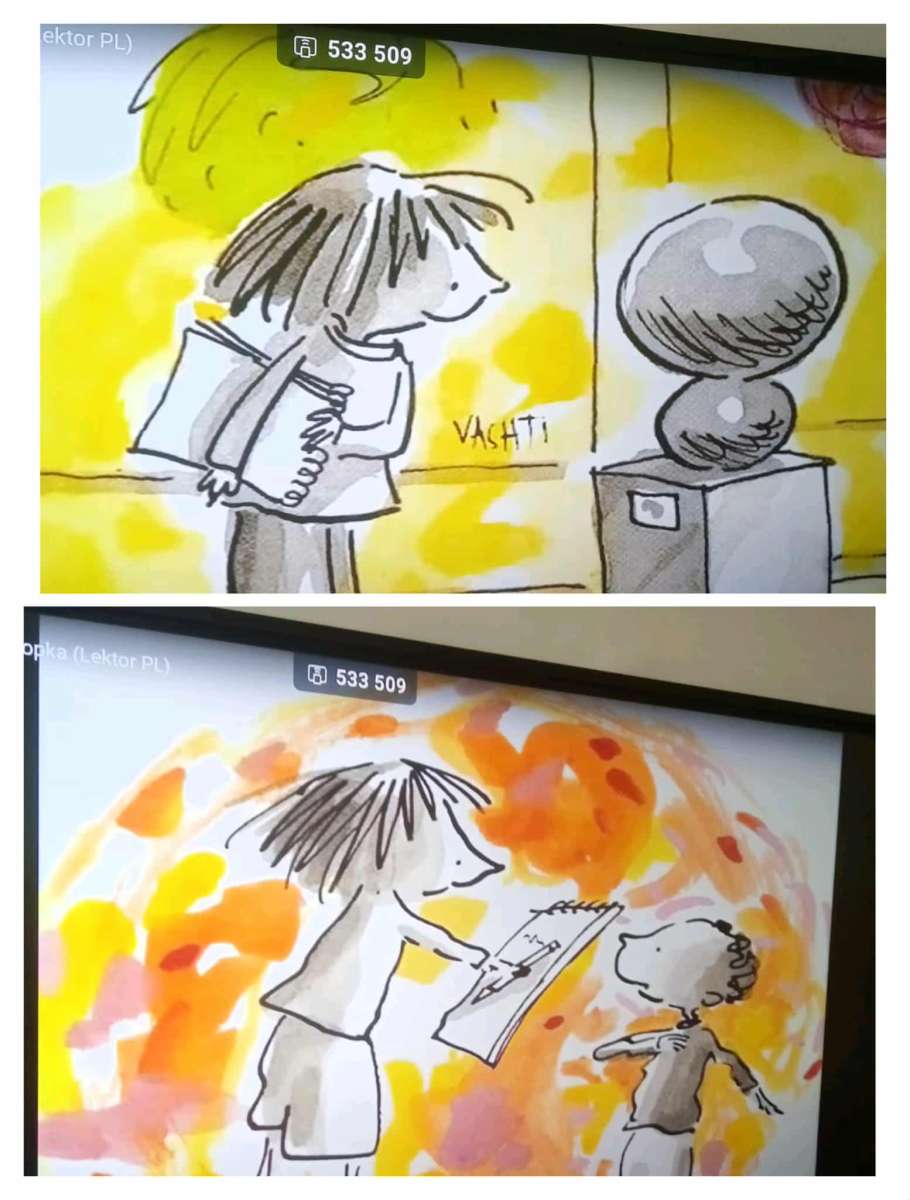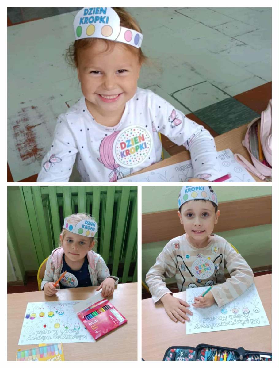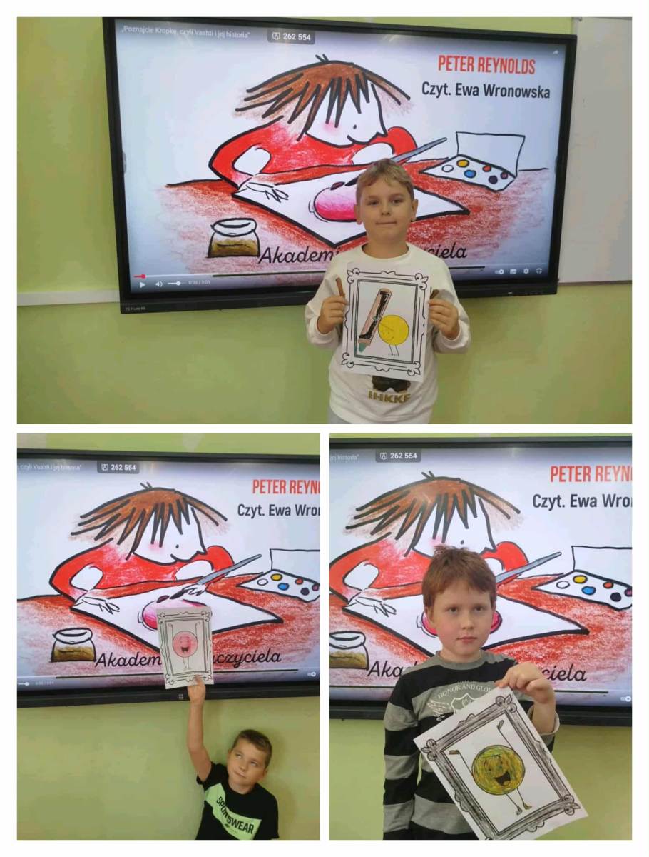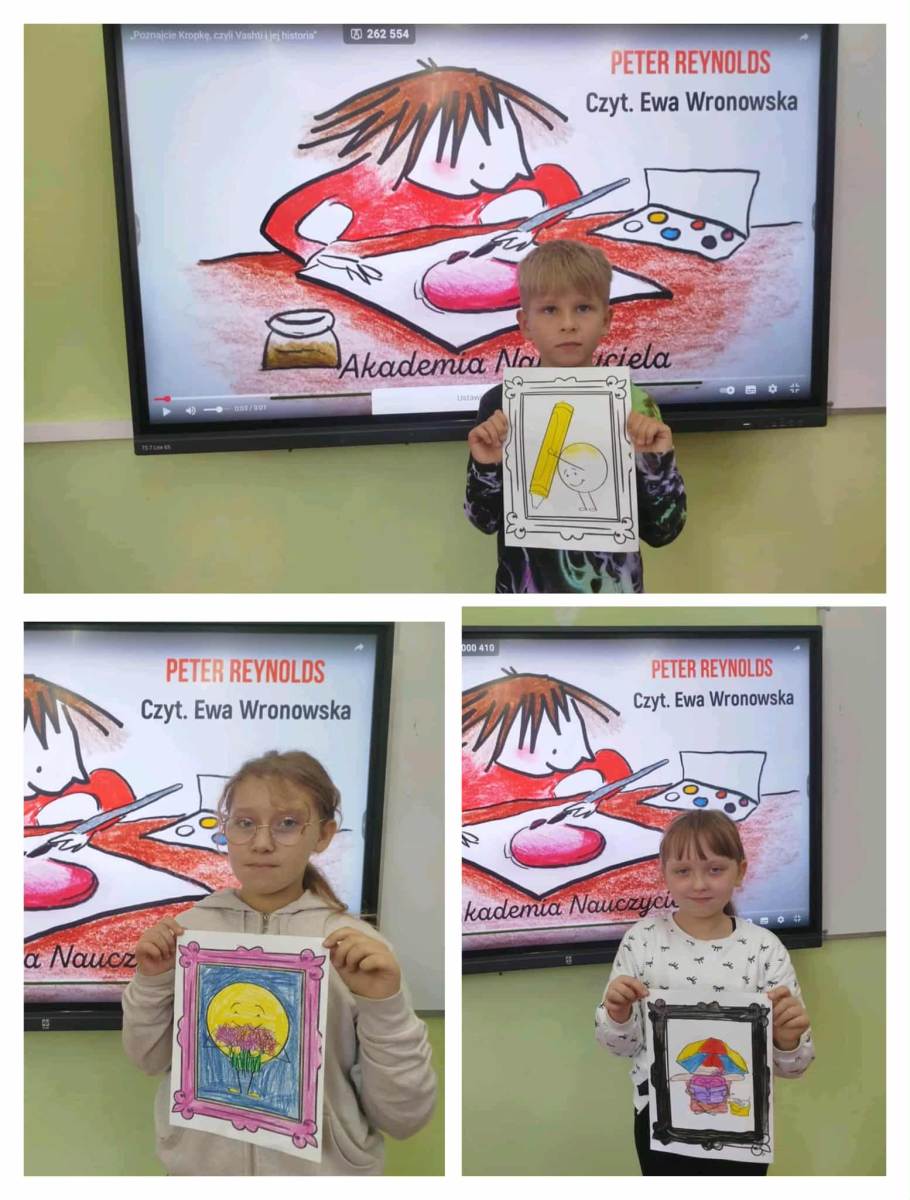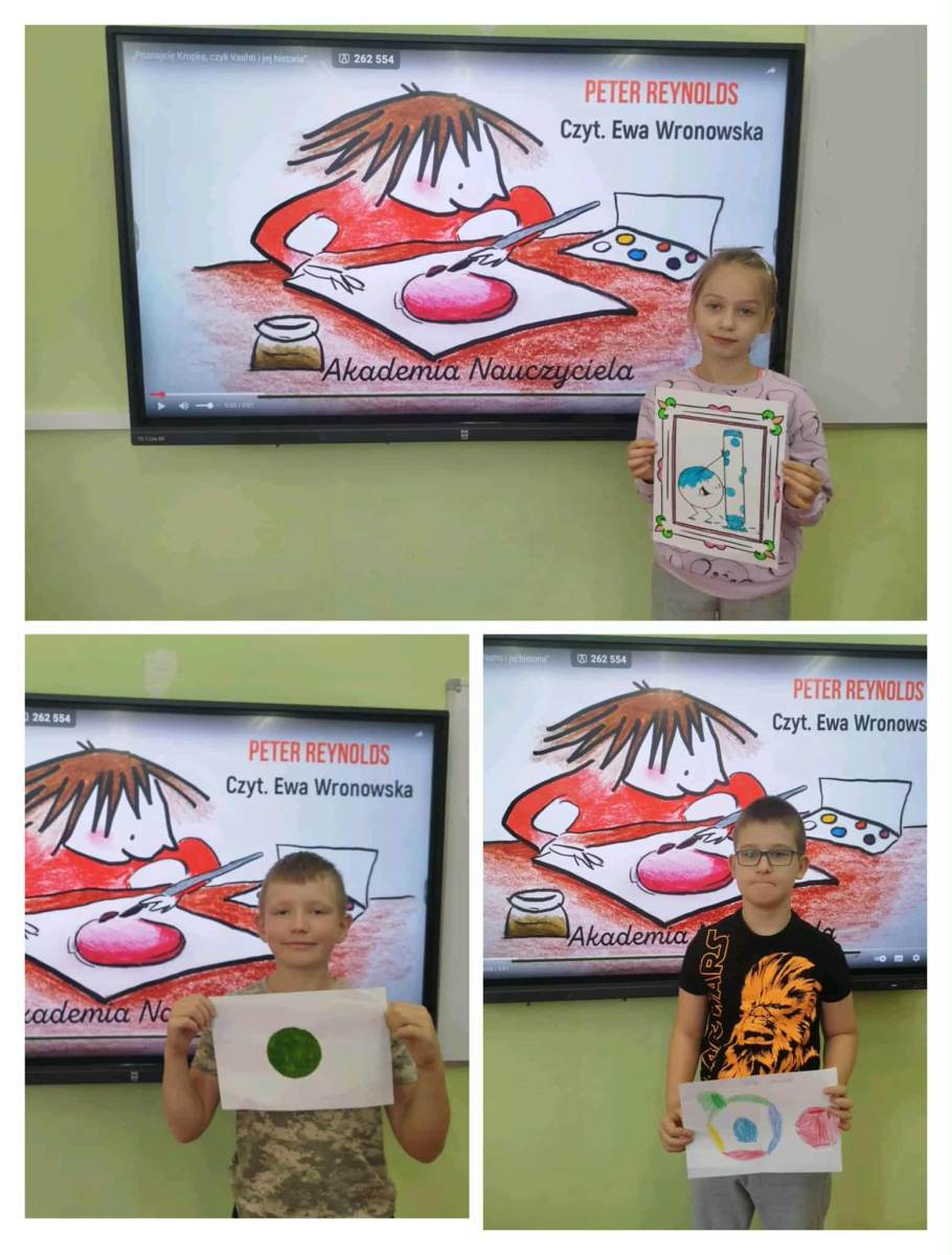 W klasach 0-III uczniowie rozmawiali dzisiaj o swoich talentach, mocnych stronach, wykonywali prace plastyczne z kropką w roli głównej oraz oglądali film „The Dot” , który jest adaptacją książki autorstwa Petera H. Reynoldsa, która opowiada o dziewczynce Vashti, która uwierzyła w siebie dzięki małej kropce![]()