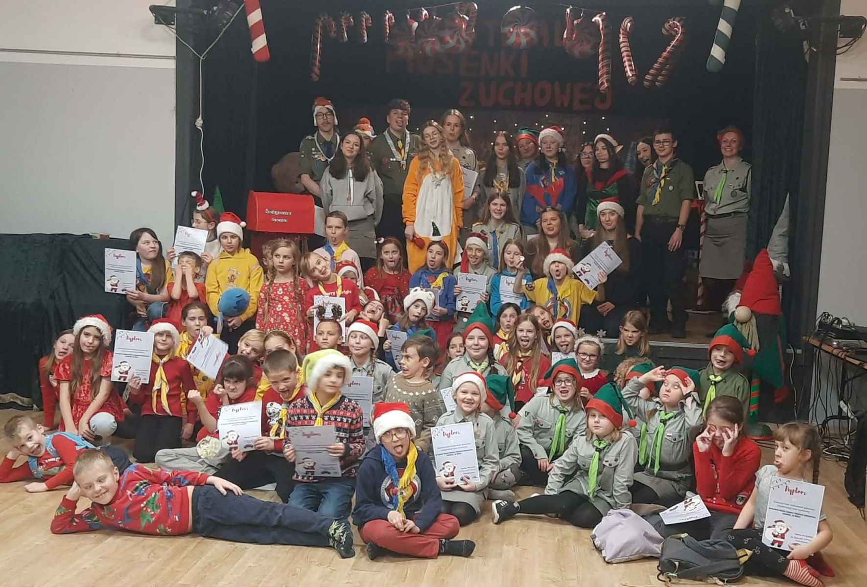 Festiwal Piosenki Zuchowej 7 grudnia 20259 grudnia 2025 administrator W sobotę nasza gromada była na Festiwalu Piosenki Zuchowej. Przygotowaliśmy piosenkę zuchową i harcerską. Nasze stroje elfów zachwyciły jury. Było suuuper. Dziękujemy p. Tomkowi za akompaniament na gitarze.