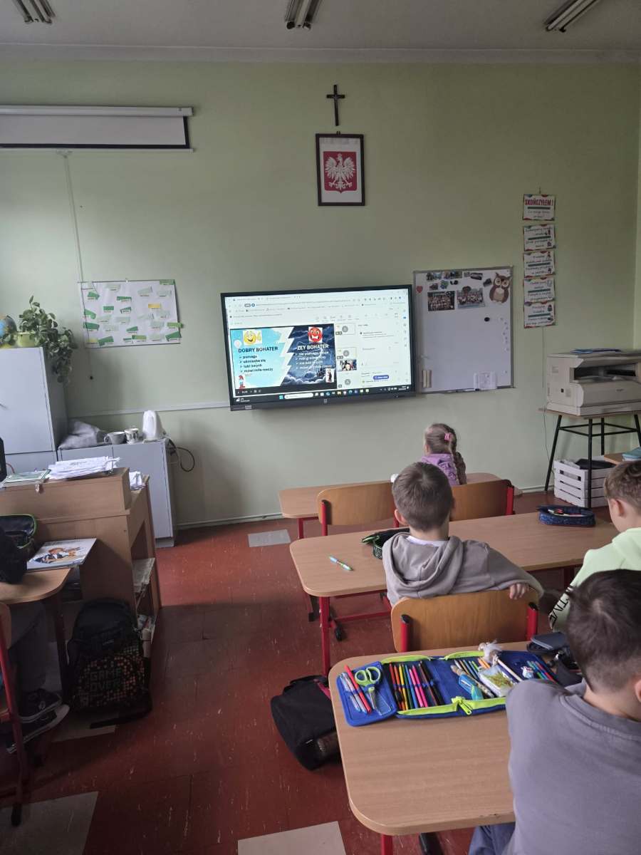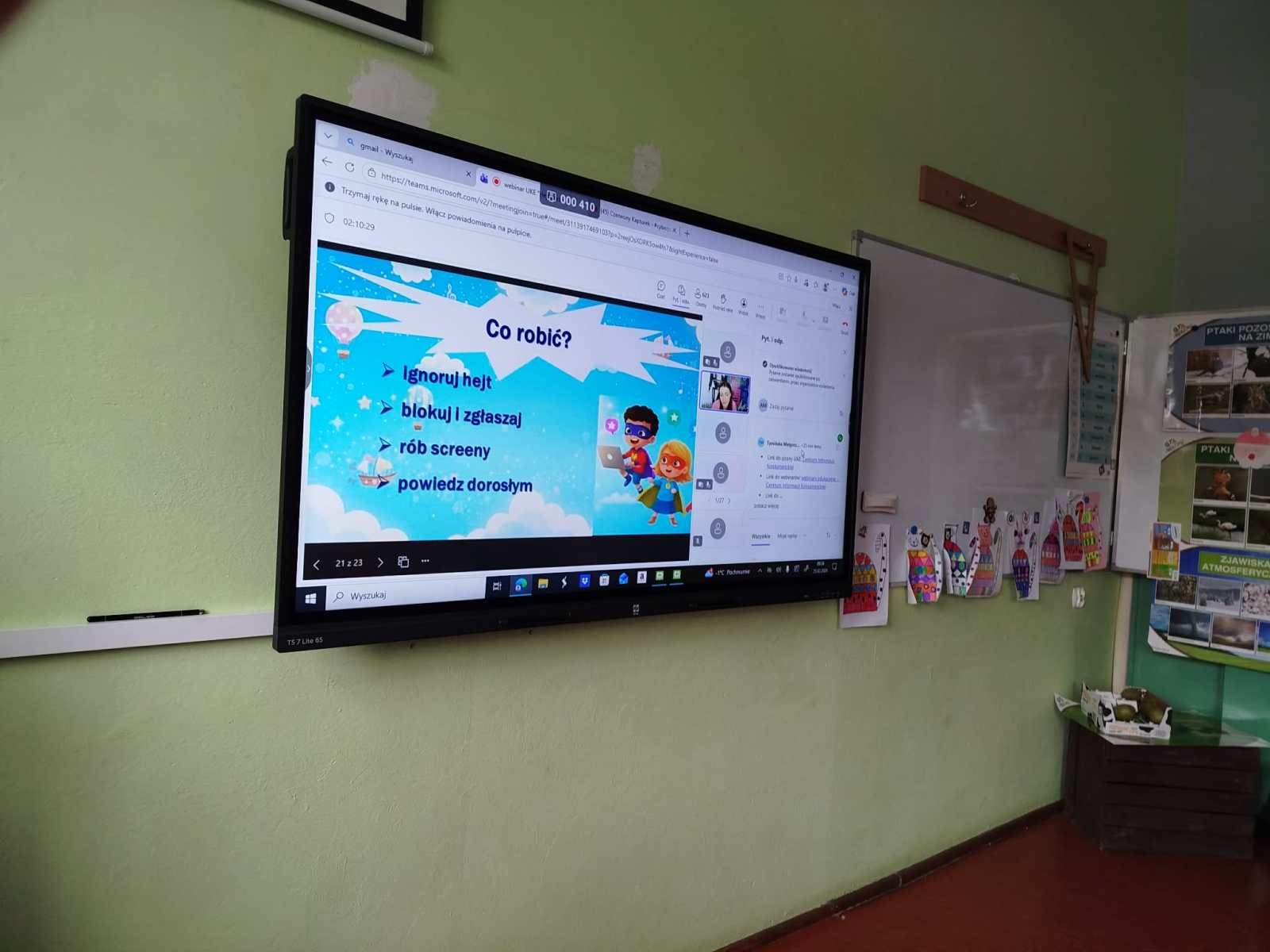 Dzieci miały też zadania praktyczne, klasa III przygotowała plakaty dotyczące hejtu, a uczniowie klasy II mieli za zadanie napisać, tak jak „cyfrowy superbohater”, coś pozytywnego o każdym koledze z klasy.