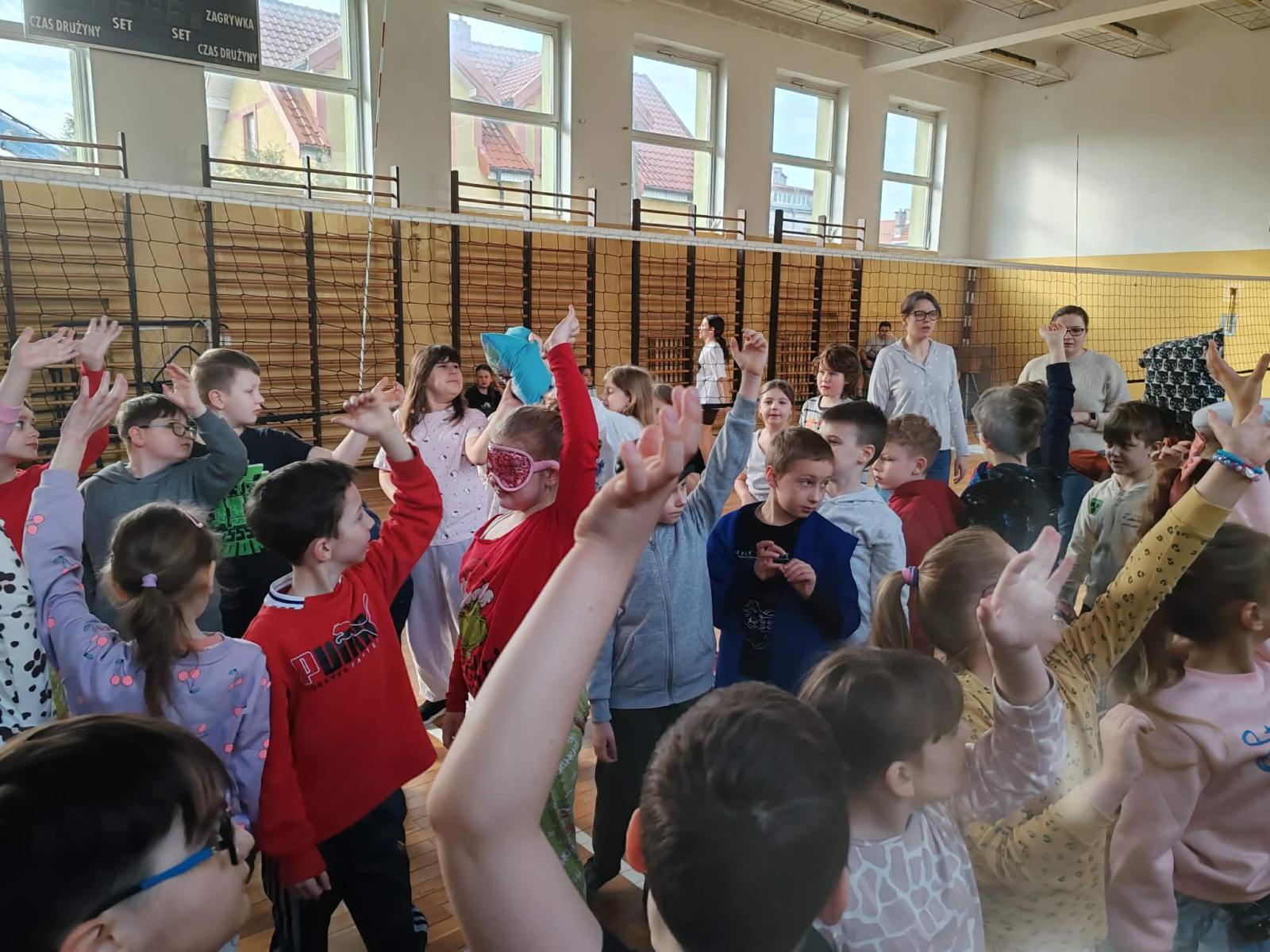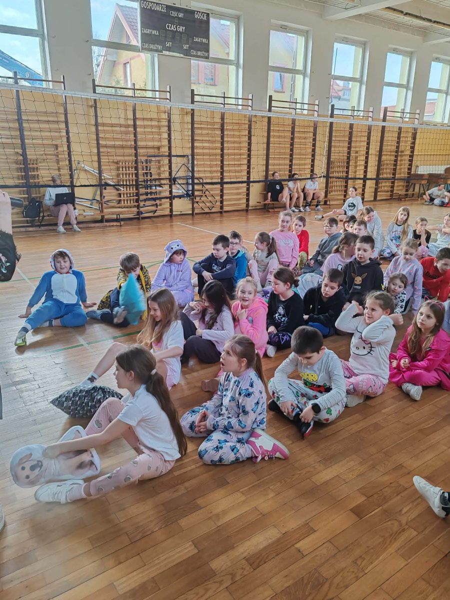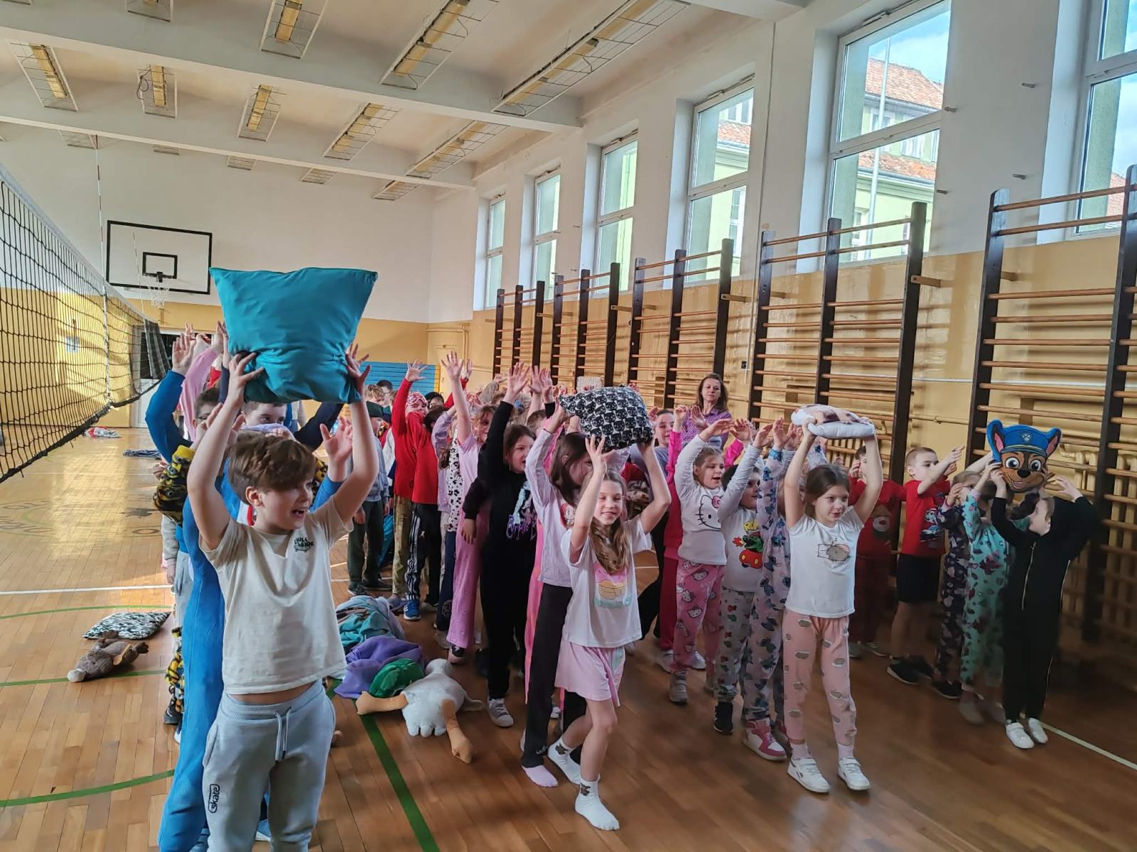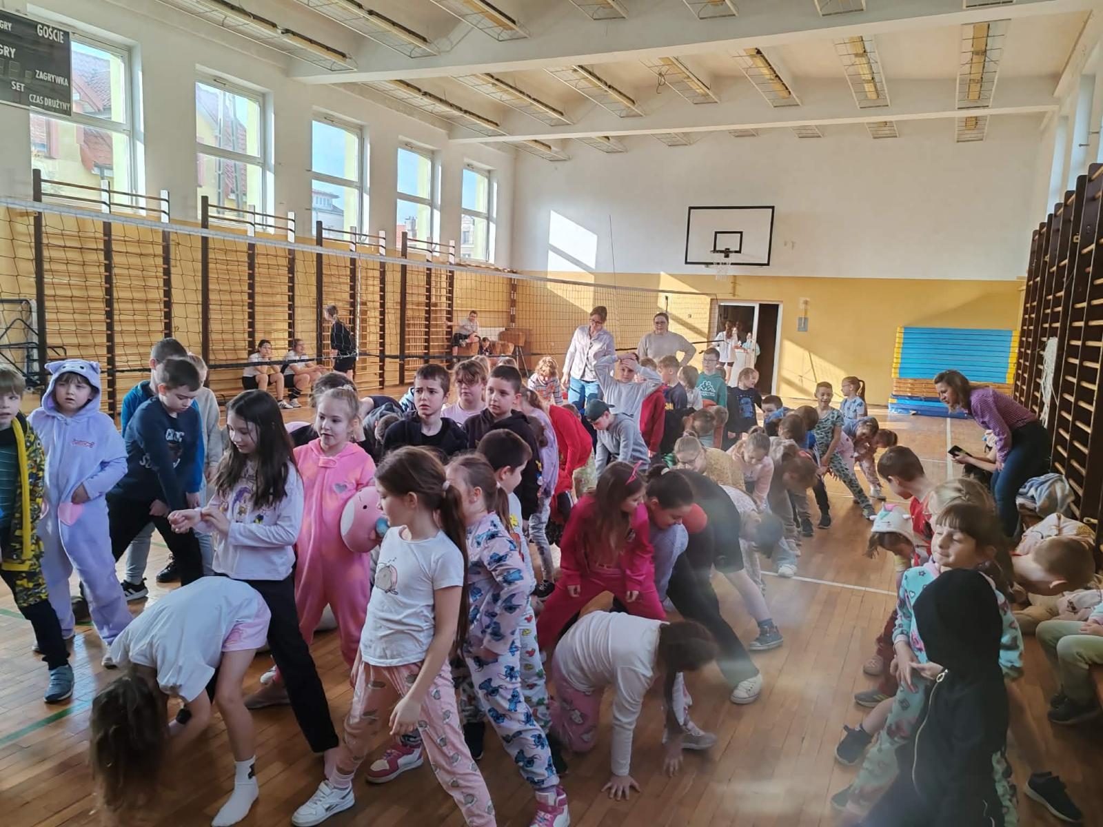 Tego dnia uczniowie klas 0-3 przyszli do szkoły w piżamach, przynosząc ze sobą przytulanki, poduszki oraz koce, co stworzyło miłą i przyjazną atmosferę.