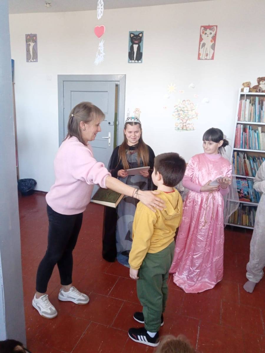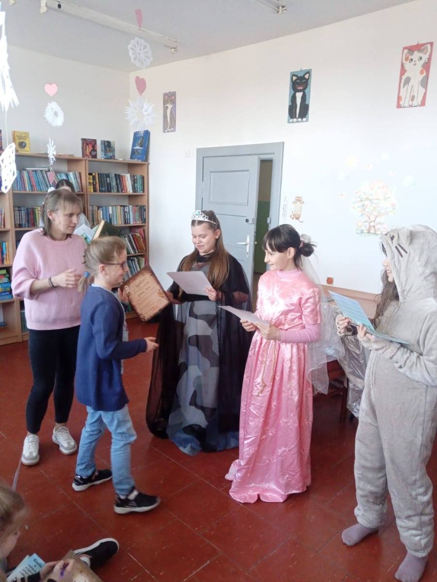🧚🫅Krótka inscenizacja z udziałem uczniów starszych klas,obowiązkowy sprawdzian ze znajomości baśni,uroczysta przysięga, pasowanie,dyplomy i upominki.