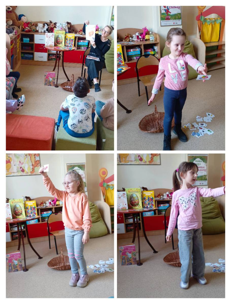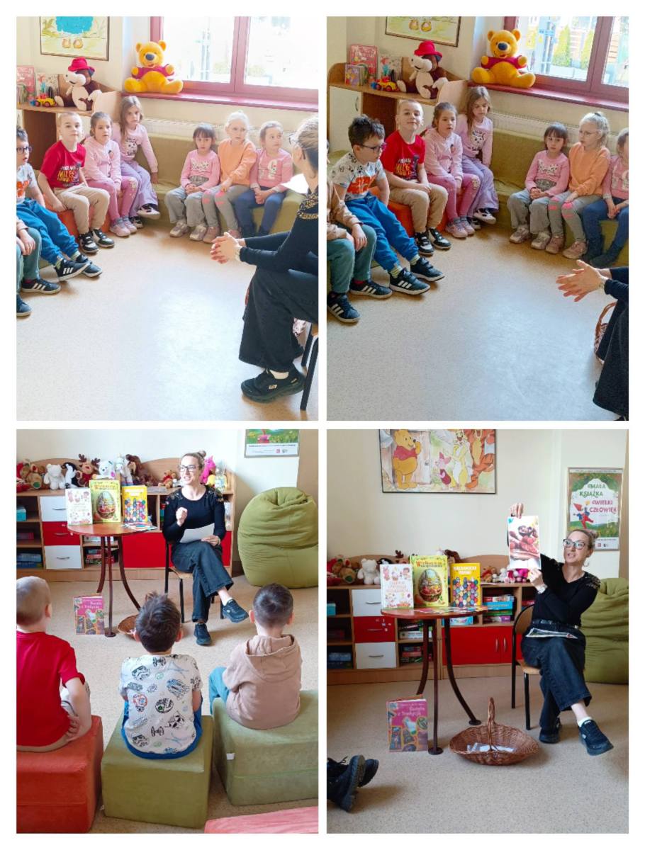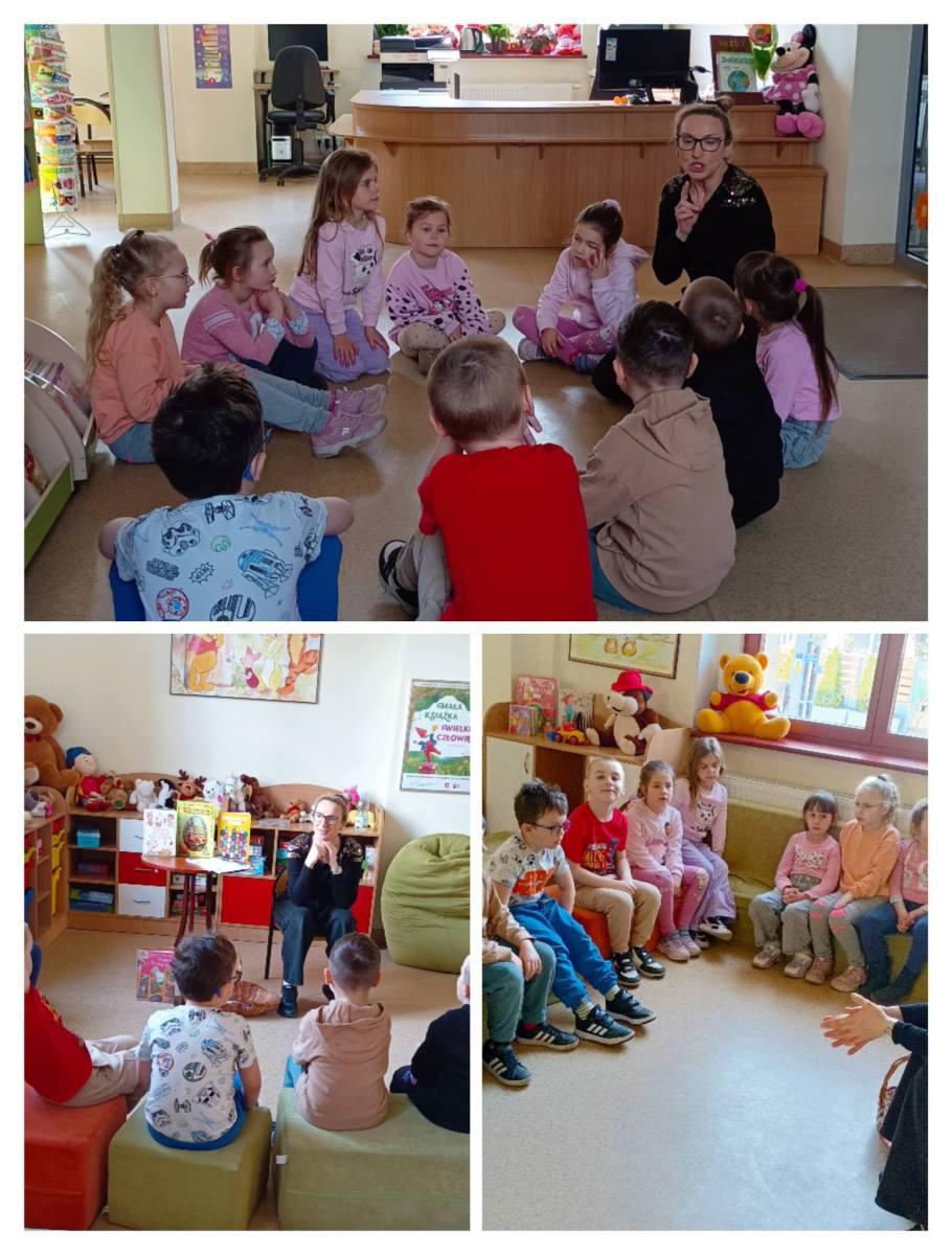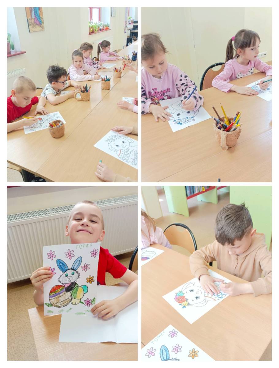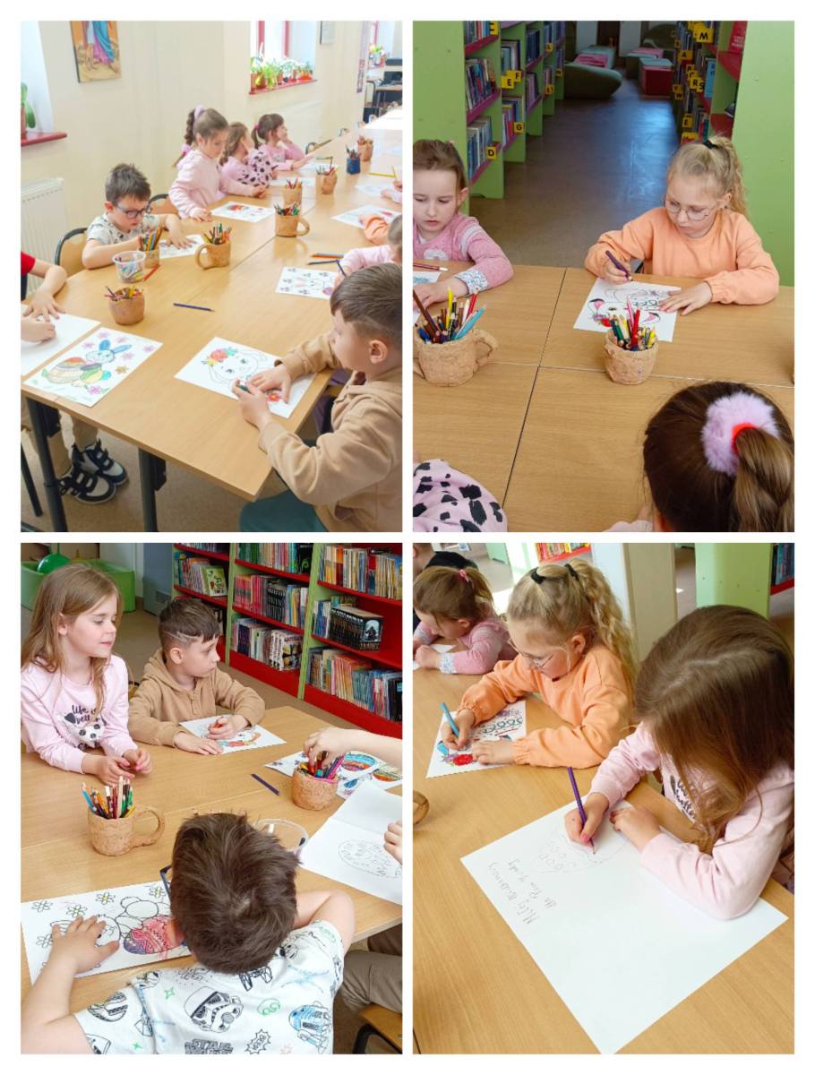Dzieci z zerówki odwiedziły bibliotekę,gdzie uczestniczyły w warsztatach wielkanocnych.Wysłuchały opowiadania o tradycjach świątecznych, rozwiązywały zagadki,nie zabrakło zabaw ruchowych ,a na koniec wykonały pracę plastyczną.